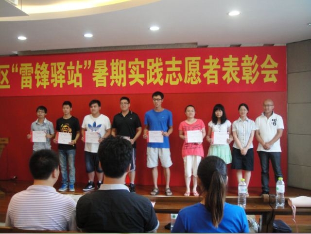 2012年8月31日下午,交运学院党总支副书记赵睿老师,学院分团委书记曾令伟老师,以及辅导员郝海光赴上钢社区参加了上钢社区(街道)团工委对成人导航 14名大学生志愿者的表彰活动。