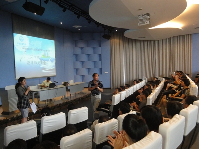 2012年9月12日(周三)13:30,成人导航 在交运报告厅召开2012级新入学研究生开学典礼暨导师见面会。成人导航 院长施欣教授和学院多位教授、副教授莅临本次典礼,与2012级研究生零距离接触,为同学们开启新的学习生涯,点燃梦想火花指出了方向。