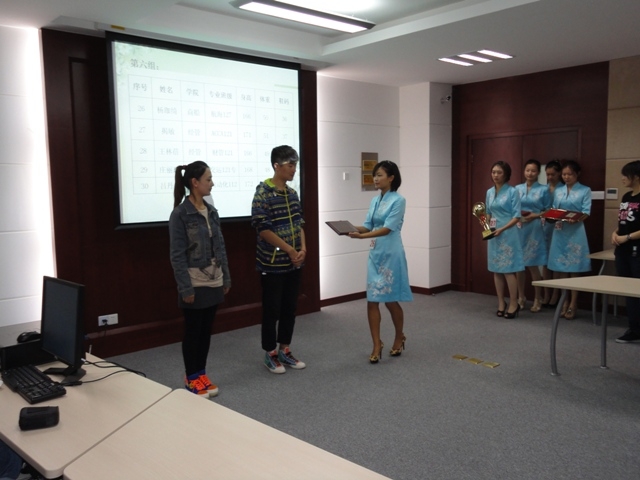 2012年10月18日晚6时,2012年校礼仪队新成员复试在成人导航 207顺利进行。担任此次评委工作的老师为成人导航 团委书记曾令伟、校团委张怡竞、校礼仪队指导老师陈祯如以及礼仪队现任队长及部长。来自全校各个学院的39名同学通过初试进入复试阶段。