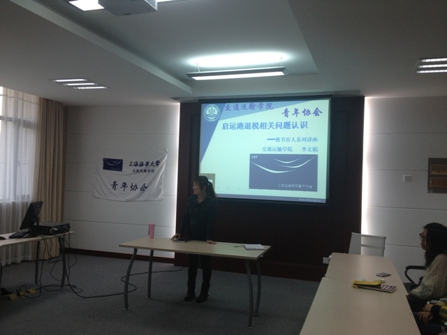 2012年11月14日下午,成人导航 青年协会教书育人岗李文娟老师在交运楼207作了题为《启运港退税相关问题认识》的专题讲座。