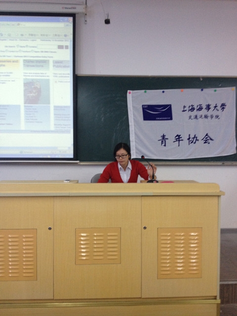 2012年11月14日下午,成人导航 钱佳老师在3A101为大家做了题为《航运圈子到底有多大》的专题讲座。