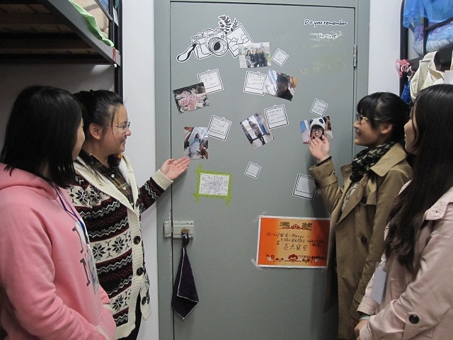 随后来到51号楼612寝室,一开门便感受到了一种不同于前者的布置风格。整间寝室处处洋溢着一种温馨的气氛,寝室成员们在不违反学生社区管理规章制度的前提下,在各自墙上都张贴了自己喜爱的贴纸,,室内布置温馨舒适,他们在各自的柜子上贴上了符合自己个性的卡通贴画。