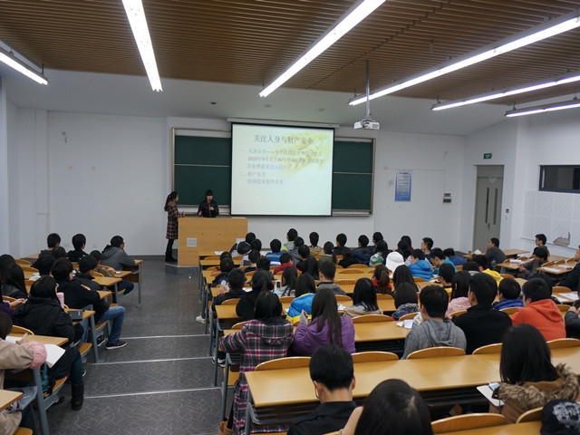 2012年12月2日,物流交运11级学生在3D207开展了安全教育主题晚点名,晚点名由辅导员陈莉老师主持。