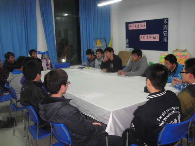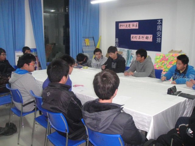 2012年12月6日晚上八点四十五,34-35号楼社区管理委员会全体成员在楼下的社区管理委员会办公室召开了题为“十八大进社区,我们在行动”的座谈会。社区辅导员郝海光老师主持了这次座谈会。