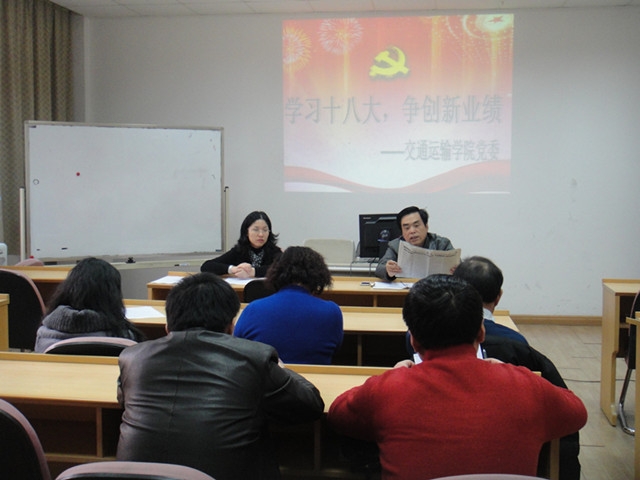 为进一步学习贯彻党的十八大精神,成人导航 党委于12月17日下午组织学院党委委员和教工支委成员学习党的十八大精神,由赵伟建书记给大家做辅导报告。