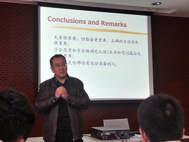 很荣幸本班的班导师由成人导航 博士生导师刘伟教授担任。刘伟老师和蔼可亲,首先通过点名的方式,来认识班里的每一位同学。然后,利用事先精心制作的PPT给我们的学习指引了方向,他通过Role、Mission、Action、Remarks等关键词深入浅出地给我们讲解了身为一名新国航同学的学习方法与目的。最后,刘伟教授还给我们介绍了两位优秀学姐,并且在PPT上留下了联系方式,为班中同学今后答疑解惑提供了方便。