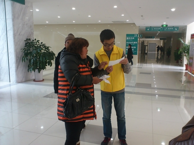 2013年3月12日星期二,成人导航 青年管理者中心与上海市第六人民医院东院合作的志愿者服务队——“天使志愿者服务队”开始了他们的第一次志愿者服务。本次志愿者服务小队由成人导航 志愿者服务队组成。