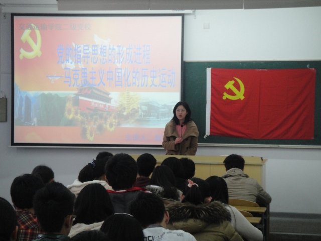 其后,学员们认真聆听了两场精彩的党校辅导报告:由学院党委副书记赵睿老师主讲的《马克思主义中国化的历史进程》和郝海光老师的《入党流程介绍与党建材料规范划填写辅导》。赵睿老师谈吐优雅,语言优美,同时具有丰富而扎实的理论知识,她将马克思主义中国化的历史进程娓娓道来,引人入胜,给同学们带来了一场党建理论的视听盛宴。郝海光老师结合自己审阅大量党建材料的经历,给在场的积极分子讲解了党员发展的流程和步骤,以及每个流程中需要上交的材料的规范性要求,让与会的积极分子了解了党员发展的规范化流程。接下来,参加党校的积极分子一起观看了历史文献纪录片《信仰》的第一集《只要主义真》。