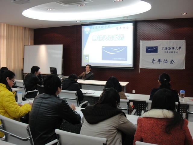 2013年3月26日下午,成人导航 青年协会举办了“用镜头看世界”系列专题讲座。本次讲座主讲人为成人导航 党总委书记赵伟建老师。交运全体辅导员及行政人员参加了此次讲座。
