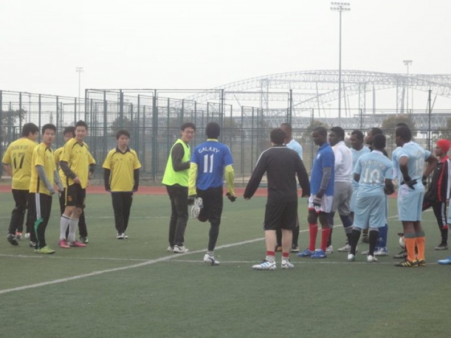 2013年3月27日15:00,成人导航 团委外事部与心引力学生会携办的交流生足球赛第二场在北区体育场继续开演。与上场相比天气好了许多,这让球员们与观众们都感到更加充满活力。学院团委书记曾令伟老师仍然来到赛场观战,为交运队员与留学生队伍加油打气。交运院队统一着装,亮黄色的队服显得格外醒目。