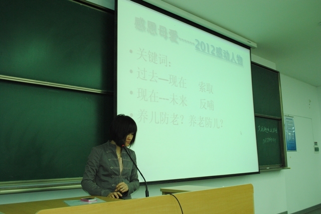 ur2young 在 周三, 05/22/2013 - 14:09 提交 2013年第六周晚点名,交运物流11级同学观看学习了十大感动中国人物之陈斌强。 晚点名时播放了感动中国十大人物介绍之陈斌强。他用一根背带背着母亲,照顾母亲生活起居,感动了中国。观看影片全程,同学们认真的看着影片,陈斌强的事迹引起了同学们的深思,辅导员陈莉老师还提出不要把“养儿防老”演变成“养老防儿”,随后陈莉老师在晚点名上提出同学应该孝敬自己的父母,并应该从小事做起。 此次感恩主题的晚点名,在同学们观看影片的同时,更加懂得了要珍惜眼前的生活,更加的孝敬自己的父母。