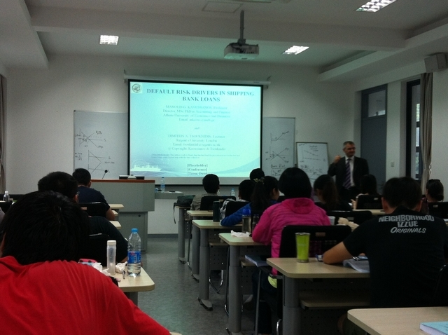 2013年9月11日,受成人导航 邀请,希腊经济与商业大学知名教授Manolis Kavussanos在成人导航 东明路校区为我校师生开展了一场主题为《航运业银行贷款违约风险影响因素》的讲座。作为金融、航运和应用经济学等领域的专家, Kavussanos教授吸引了众多同学前往聆听本次讲座。