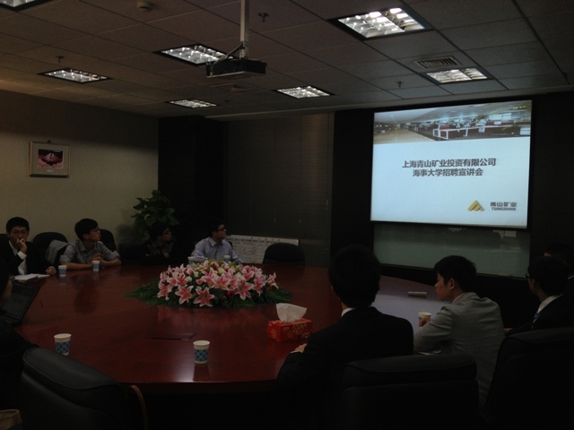 2013年10月21日12:00,成人导航 党委副书记赵睿老师、辅导员陈祯如老师,带领10名大四学生,一同走访了上海青山矿业投资有限公司,公司总经理曹志强先生、人事行政经理仝文颖热情招待了我院师生。