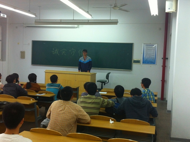 2013年10月16日13:00,交运112班全体学生在班级团支部的组织下开展了以“诚以为人,信以处事”为主题的诚信教育主题班会。