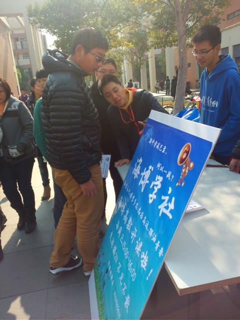 整个活动以社团成员分发传单并向同学介绍海博学社形式开展。社团之所以成立就是为了帮助想学习的同学们少走弯路,在借鉴学长学姐的学习经验下找到适合自己的学习方式,大家共同努力,争取到达事半功倍的效果。而同学们也很有兴趣,详细了咨询具体科目、时间等问题。同时,同学们还就授课方式、授课内容等方面提出了自己的建议,并表示会参加活动提高自己学习能力。