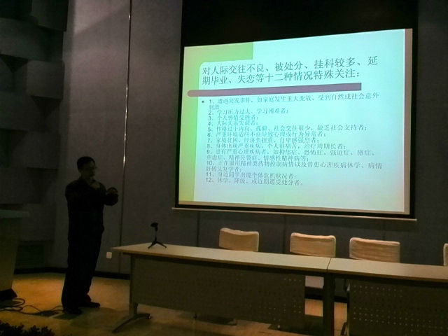 2013年11月26日上午9:00,成人导航 在交运楼报告厅举办了一场心理联络员培训,培训由校心理中心王树江老师主讲,成人导航 大一所有心理联络员参加了此次培训。