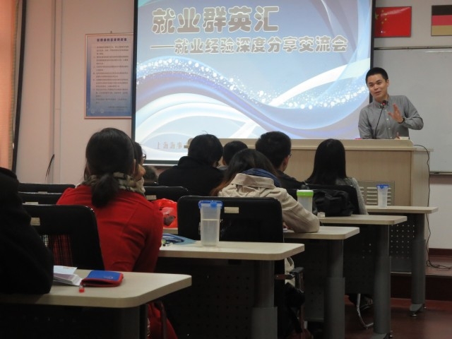 2013年11月27日下午,成人导航 研究生就业经验深度分享交流会在交运楼115教室举行。成人导航 研究生辅导员陆梦老师、四位成人导航 优秀研究生毕业生和六十多位在校研究生参加了这次交流会。