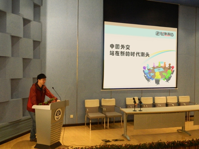 2013年12月25日上午,成人导航 为了让本院学生初步了解新时代的中国外交在世界的形式格局,特邀法学院团委书记刘直老师在交运报告厅为大家做了题为《中国外交站在新时代的潮流》的形势政策课讲座。