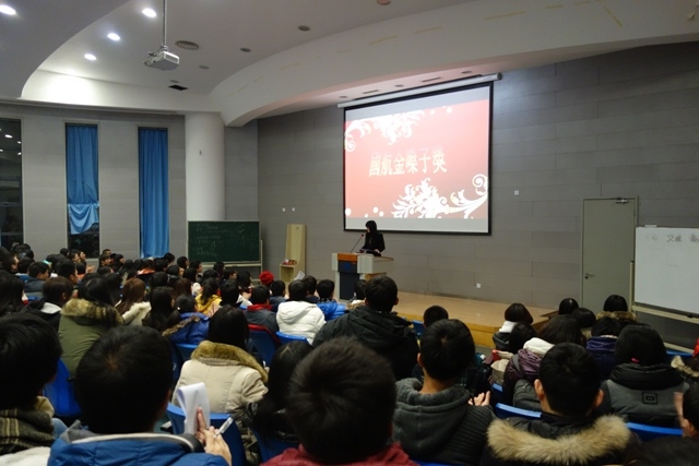 2013年12月29日晚,交运学院国航13级学生在2C101进行了一场主题晚点名,主题是“感恩2013、展望2014——致我们的金色大一”,本次活动由国航131班徐心涵主持。