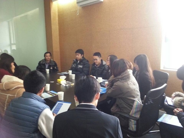 2014年1月10日下午,成人导航 兼职辅导员郭梦雅带领十余名大四学生,一同走访了考拉船务有限公司,公司胡惠生经理、孙伟松经理和徐黎丽经理三人热情招待了我院师生。