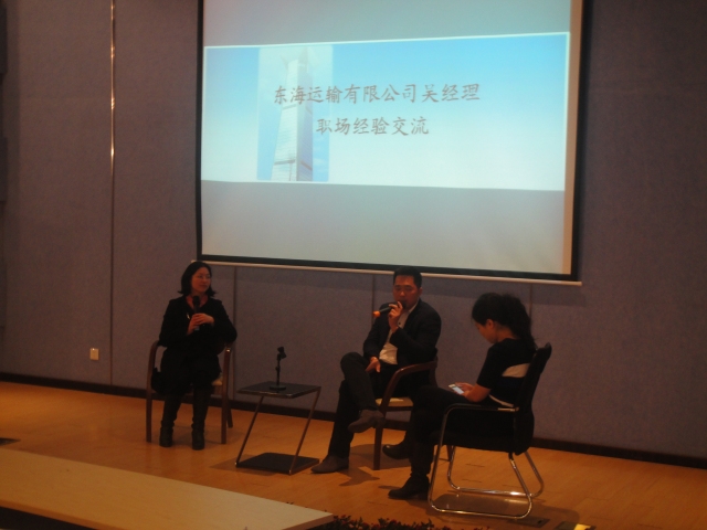 2014年3月13日下午,东海运输有限公司总经理吴清敏先生在交运楼报告厅召开了一场职场经验交流会,交运学院党委副书记赵睿老师主持了这场交流会,学院10、11级学生近两百名学生参加了此次职场经验交流会。