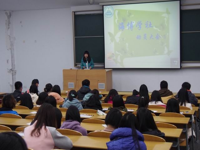 2014年3月16日晚,成人导航 海博学社在教学区3D107教室举行海博学社全体社员大会。海博学社指导老师朱红红及全体海博成员参加此次大会。