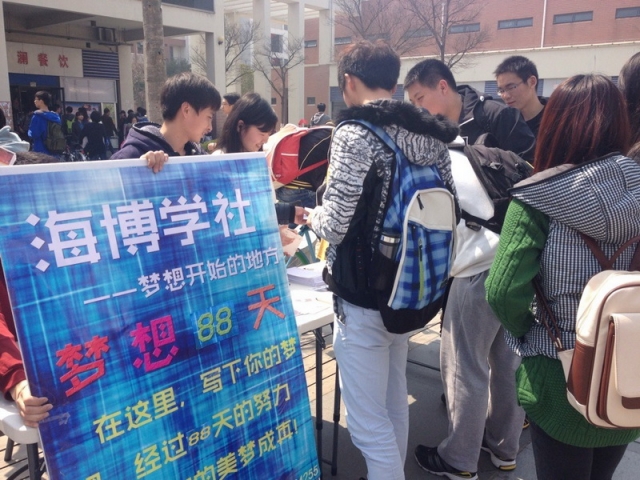 2014年3月18日中午,成人导航 海博学社在北广举行了一次梦想八十八天活动。本次活动旨在帮助同学们找回追寻梦想的活力与激情,发扬海博努力追梦精神,让更多的同学完成自己的梦想,达到自己的目标。