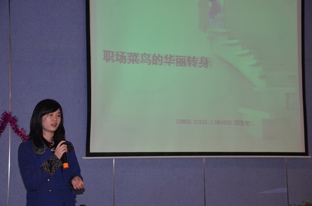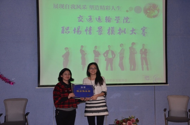 本次大赛由自我介绍,无领导小组讨论,职场情景模拟三大环节组成,评委们将根据选手们3轮的综合表现来决定冠军的归属。在第一轮的自我介绍环节中,选手们表现各有千秋,使用了不同的方式让大家全方位的了解自己。翁洁琼女士对8位选手的表现做了逐一的细致点评。第二个环节无领导小组讨论,8位选手就“交运卿云工作室微信平台的推广和宣传”话题各自发表了自己的观点。在激烈的讨论后,翁洁琼女士在肯定了各位选手的同时也提出了进一步的要求,并鼓励选手们在最后一轮中能再接再厉。最后一轮比赛是职场情景模拟大赛,这个环节需要选手们在遇到突发“困境”时,做出最为迅速且正确的选择。之后,现场播放了三段精心拍摄的面试礼仪视频。接下来我校校友郑美忆女士向各位学弟学妹讲述了她“职场菜鸟华丽转身”的故事,获得了很好的反响,翁洁琼女士也给大家详细了介绍了中联物产有限公司的详细情况,使大家对于中联物产有限公司有了更深的认识。最后,翁洁琼女士宣布了来自英商121的李小芳同学获得了本次大赛一等奖并亲自为李小芳同学颁发了奖状,赵睿老师也对本次大赛做了总结。在本次活动的最后,赵睿老师和翁洁琼女士分别代表成人导航 和中联物产有限公司进行了院企俱乐部的授牌仪式。