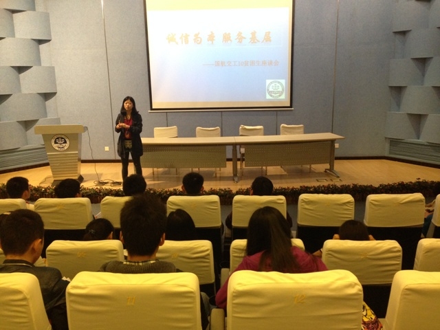 座谈会上国航交工10级辅导员陈祯如老师首先向大家传达了关于报送2014年毕业生基层就业学费补偿和国家助学贷款代偿材料的通知。介绍了符合条件的单位类型以及申报的流程,倡导大家在考虑个人职业发展的同时投身基层,回报社会。对此,很多同学都表示出了很大的兴趣。因为大学期间一直受到学校和社会的资助,所以同学们都想在踏入社会之际尽快服务社会,回报国家。其次是辅导员建议大家毕业工作之后积极偿还大学期间的学费贷款,以免之后因为还款不及时而产生额外的还款压力。大家也纷纷表示在力所能及的情况下按期偿还学费贷款,保持良好的个人信誉。