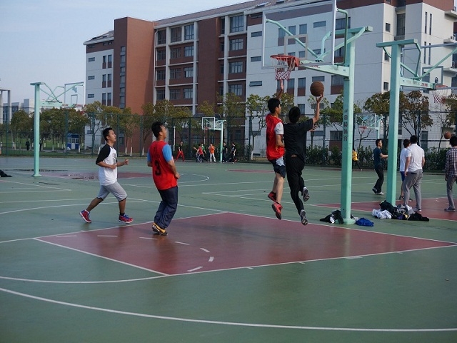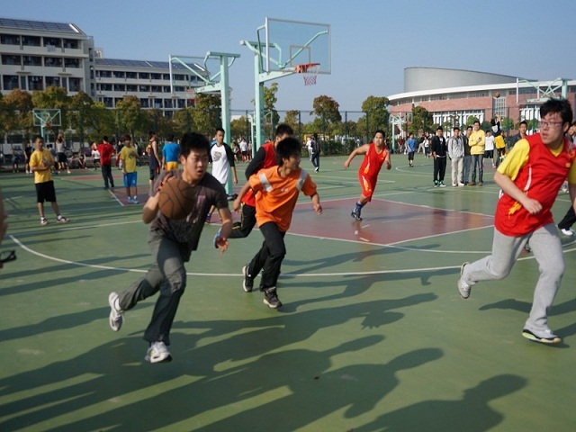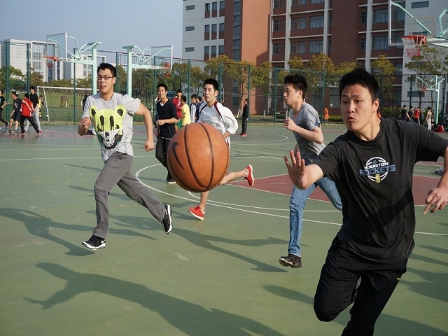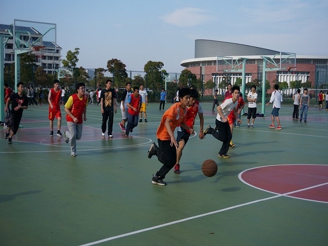 比赛分两场。 首先上场的是交运学院队和法学院队。响亮的哨音长鸣,双方选手全神贯注地投入到激烈的“对战”之中,双方你来我往,“战斗”得不可开交。选手们娴熟精妙的技术引来观众们的阵阵喝彩与掌声。轻松愉悦的比赛氛围中洋溢着青春的热情,无论场上场下,无论队员观众,只要参与进来,都能感受到激情飞扬的比赛之中的无限魅力。最终比分49:39,交运学院队脱颖而出。接着进行同样激动人心的物流工程学院和海洋环境学院对抗赛。双方实力不分上下,直到上半场结束仍呈现打平的状态,看来势均力敌,时间一分一秒过去了,双方你追我赶。实力,耐力,物流工程学院稳中超越,以32:24的最终比分赢得胜利。赛中双方队员秉持友谊第一比赛第二的运动精神,以出色的技术及团队配合向观众们送上了一场篮球的饕餮大餐,运动员们团结奋进的精神感动了在场的每一个人,他们用自己的激情与汗水传达着对运动,对生活的热爱,传达着56-57社区友爱互助的团队精神。