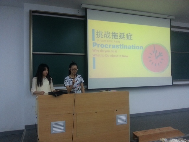 2014年6月08日晚上在3D107,在国航12的晚点名上,举办了一次名为“挑战拖延症”的心理主题教育活动。活动由成人导航 辅导员朱红红老师主持,国航12级辅导员助理左芯瑞同学主持,国航12全体同学均到场参加了此次活动。