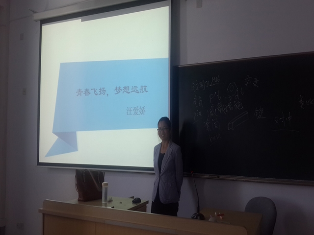 2014年10月8日下午2:00在教学楼2A507召开了主题为“青春飞扬,梦想远航”的专家讲座,本次讲座的主讲人是成人导航 的汪爱娇老师,教室座无虚席。