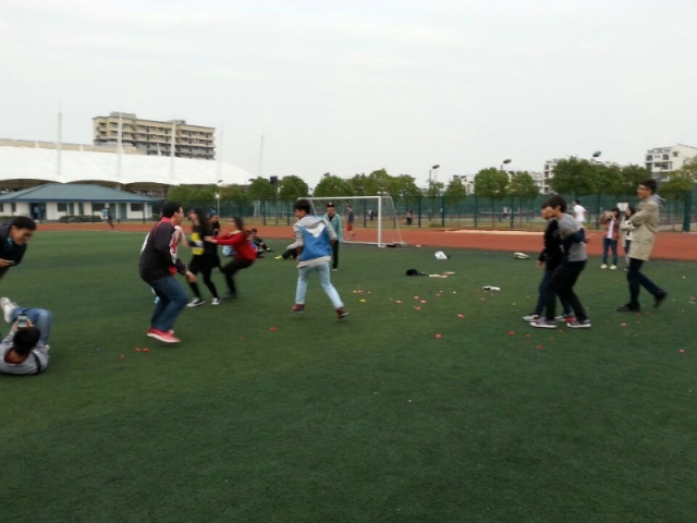 2014年11月11日下午15点30分,由交运抒心坊举办的“双11”户外趣味素拓活动在北区操场顺利进行,来自不同专业的共十六位同学参与了本次活动。