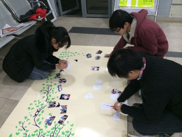 这次的活动由51楼楼长共同组织,各层层长积极参与。各楼层长将一周内收集的各寝室全体成员的合照剪成各种样式,尽数贴于制作成树枝型的展板上,在美化的过程中中,楼层长们积极地就原有的寝室文化布置展开丰富的讨论,并充分发挥自各的创造力将这棵大树打造成最完美的状态。