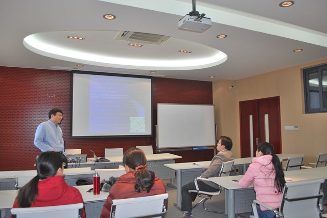 高扬教授就其提出的正则对偶理论(Canonical Duality Theory)向我校师生进行了详尽的讲解,包括该原理的基本概念、模型建立及算法,重点解释了该理论与传统对偶理论和算法相比所具有的优势,最后介绍了该理论在物流和交通建模领域里的应用实例。高教授的讲座持续了2个小时,深入浅出的讲解让在座师生意犹未尽。