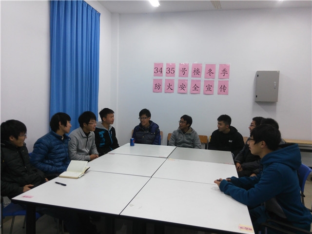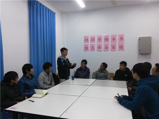34-35号楼宇社区自主管理委员会全体楼层长于2014年12月22日晚8:45在52-53号楼会议室召开了一次冬季安全宣传讨论会,就本学期在成人导航 推行防火安全月之际,就将要开展的防火安全推广工作进行了讨论。