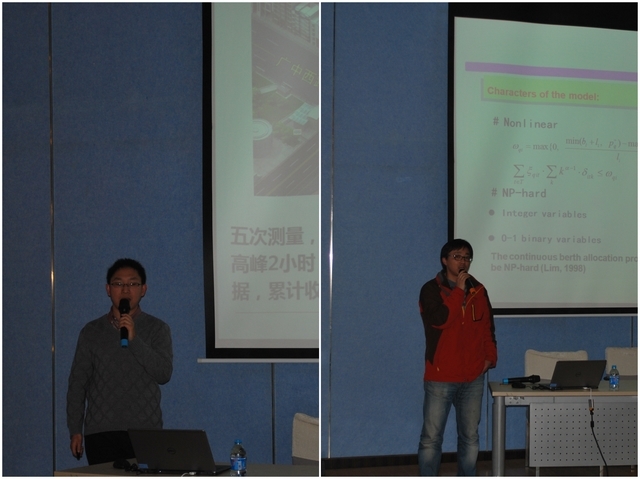 成人导航 的院长葛颖恩教授首先就主题做简短介绍。研讨会分上半场和下半场,历时4个半小时。上半场由成人导航 郑士源教授主持,来自上海交通大学船舶与海洋工程学院的谢驰教授、我校科学研究院的何红第副教授第、李锋老师做研究报告,下半场由科学研究院的何红弟副教授主持,华中科技大学的谭志佳副教授、成人导航 的张欣副教授和郑士源教授做研究报告。他们的报告内容涉及新能源车辆使用下的交通行为与网络均衡、车辆排放物的交通建模、连续型泊位分配与龙门吊联合作业优化、内河港口选址、定价与规模决策、国际航运市场的风险分析、港口的多层级管制等主题。会场中间穿插提问和讨论环节,气氛热烈,透出浓浓的学术气氛。