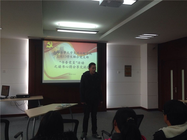 2014年12月24日下午15:30,成人导航 13级学生联合党支部第二次“书香活动”在交运楼207顺利举行,成人导航 辅导员刘建老师和郝海光老师担任了本次活动的特邀嘉宾,支部的所有党员和入党积极分子参加了本次活动。