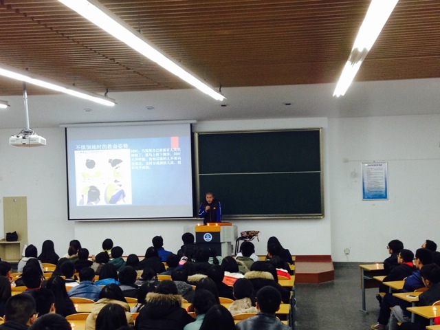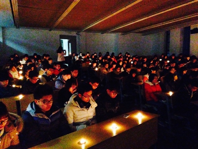 2014年12月31日晚,上海市黄浦区外滩陈毅广场发生群众拥挤踩踏事故,事故中36人死亡,49人受伤,其中大多数为青年。活动一开始,陈祯如老师首先播放了两段视频,分别反映了当天现场的情况和救治医院中的情况。接着,同学们点燃了手中的蜡烛,在陈祯如老师的主持下开始了悼念活动,郭晓琛同学在烛光中朗诵了《跨年祭—祭踩踏中遇难的孩子们》。拥挤的人潮、忙乱的医院、痛苦的家属……这些画面久久萦绕在同学们的脑海之中,同学们的表情非常凝重。朗诵完毕,全体同学默哀一分钟,愿逝者安息,愿生者坚强。悼念活动结束后,熊垟同学组织大家开展了安全教育活动,内容包括如何避免同类事件发生以及如何在踩踏事故中自救等。