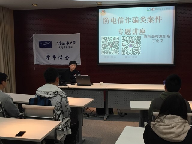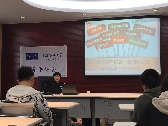 2015年1月6日,交运学院青年协会邀请临港派出所的丁定义警官为我院学生干部开展了主题为“防电信诈骗类案件”的安全教育专题讲座。