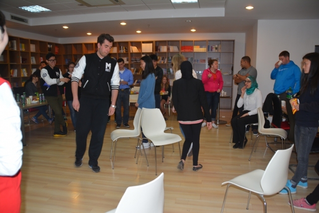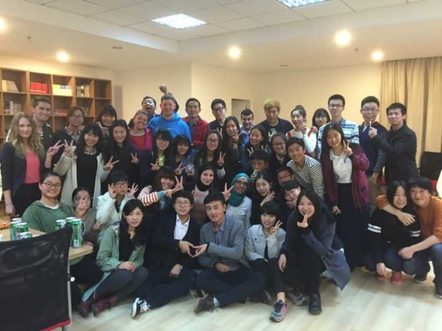 2015年4月15日晚6点半,交运学院国际生交流派对在图书馆八楼国际交流厅举行。本次活动有国航13级三十多位同学和包括美国在内的近十个国家共二十多位国际交换生参加了此次活动。