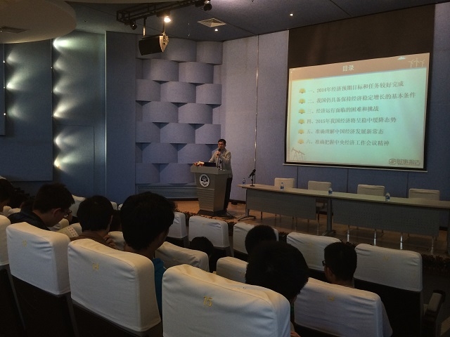 讲座内容主要分为“当前经济形势”以及“中央经济工作会议”两大版块内容。针对“当前经济形势”这一版块,陈老师首先通过讲解“2014年经济预期目标和任务较好完成”以及“我国仍具备保持经济稳定增长的基本条件”两大方面,阐述了2014年经济运行所带来的关于消费出口,物价水平,就业形势,经济结构调整等方面的积极影响。而随后讲解的“经济运行的挑战与困难”这一小节内容,则十分具体而又深刻揭示了2014年我国经济运行中产生的一些负面影响,使大家对于房地产市场百废待兴,产能过剩等问题有了更为深入的了解。最后,陈老师牢牢把握“总结过去,立足当前”的讲解思路,根据上述的两方面影响以及对投资增长、消费增长、进出口增速、物价水平四个方面的分析,不仅指明了2015年我国经济将呈稳中缓降的发展态势,同时也为大家带来了中国经济发展新常态的准确解读。至于“中央经济工作会议精神”这一版块,陈老师则通过分析稳增长的主要任务、优化经济发展空间格局、保障和改善民生重点、“啃硬骨头”改革措施落地、更高层次对外开放这五大“如何理解”的问题,为大家细致解读了中央经济工作会议的精神。
