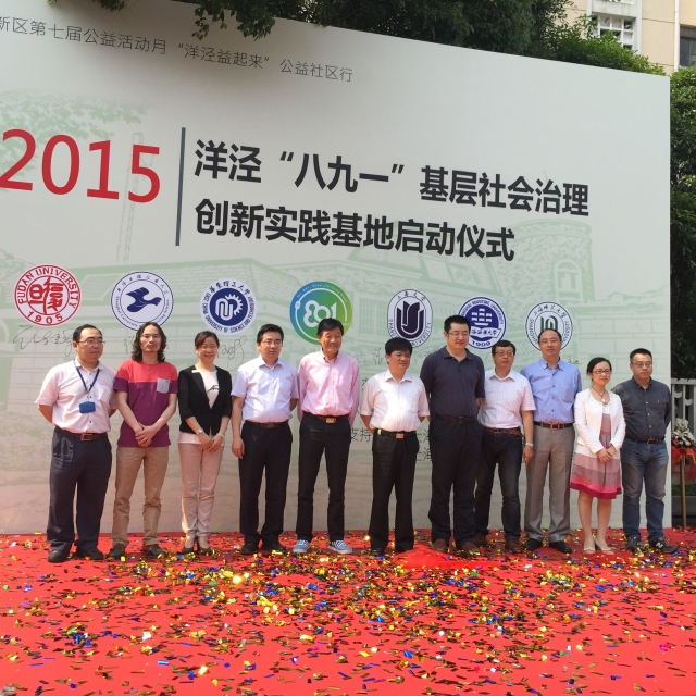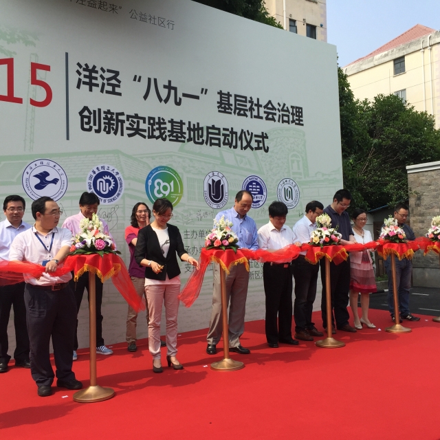 基于2014年暑假我院学生在洋泾街道的优秀志愿服务表现,在经过多次的接触与沟通后,我院与洋泾“八九一”社区初步达成了共建志愿者服务基地的合作意向。2015年6月5日上午9时,洋泾“八九一”基层社会治理创新实践基地启动仪式在洋泾八九一公益坊举行,成人导航 党委书记冯晨曦老师与辅导员朱红红老师出席了此次启动仪式,冯书记与洋泾“八九一”社区签署了合作备忘录,并参与了产学研基地启动剪彩仪式。此次启动仪式后,我院将组织学生参与洋泾社区各项志愿服务活动,助推社区公益活动的顺利进行。