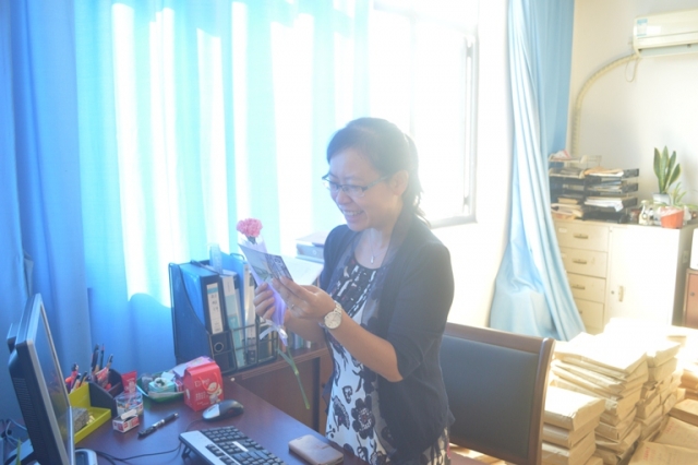 教学区的各个教室传来同学们整齐的声音:祝老师教师节快乐。学生代表向老师献上花朵和贺卡,同学们起立向老师送去节日的问候。收到礼物的老师非常的感动,表示收到同学们的礼物和祝福,让身为一名教师的自己感到很满足。同时,在交运学院楼里,交运的同学们还向没有教学任务的老师送上了小礼物及节日祝福。