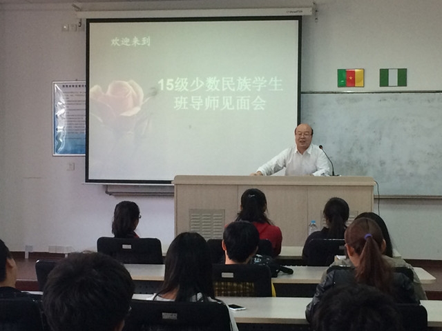 会上,成人导航 副院长、少数民族学生班导师韩皓教授首先介绍了成人导航概况 ,并表达了学院领导对15级少数民族学生的关心和热烈欢迎。接着,韩皓教授提出了三点希望,即希望各位少数民族学生能做好职业生涯规划,能合理有效的利用好大学四年的时光;希望各位少数民族学生能有公民意识,在“大家都一样”的理念中用自己实际行动提高完善自我;希望各位少数民族学生提高安全意识,在校内校外保护好自己让父母老师放心。最后,韩皓教授还留下了自己的联系方式并提议建立微信群来促进15级少数民族学生的沟通交流。