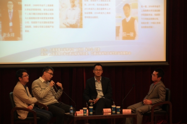 首先,主持人章强老师依次介绍了三位校友,并对他们的到来表示热烈的欢迎。接下来,三位到场嘉宾就如何合理分配学习精力这一问题,分享了自己的经验,着重强调了经济、金融课程的重要性,并鼓励同学们关注国家宏观新闻和政策走向。紧接着,三位校友与同学们交流了他们对毕业后应如何选择的看法,提倡各位同学先就业以积累经验,再考虑是否创业的问题。最后,三位嘉宾为同学们分析了航运界目前的发展状况及前景,激励各位同学努力学好专业知识,拓展学习实践能力,相信未来是属于年轻人的。
