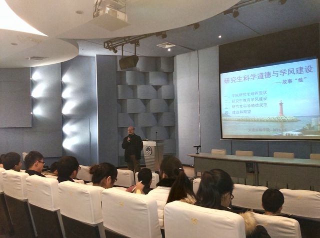 元月六日新年伊始,应学校研究生院要求,在成人导航 报告厅举行“研究生科学道德与学风建设宣讲”第二讲,由韩皓教授作了题为“研究生科学道德与学风建设 ‘故事烩’”的专题报告。