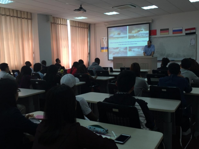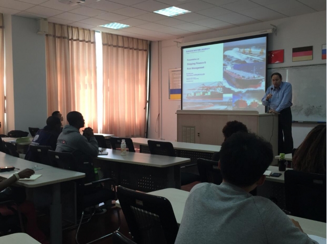 5月11日上午,希腊爱琴海大学Theodoros Syriopoulos教授在成人导航 的115教室为广大师生作了题为“Critical Corporate Financial and Risk Management Decisions in Shipping in the Aftermath of the Global Crisis”的讲座。