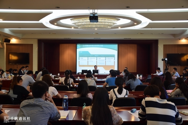 随后,燕献凯先生做主题演讲。演讲中,燕献凯先生介绍了亿海集团以及船舶加油行业的相关知识,强调创新业务模式的重要性,与参会的老师和学生分享了实用的工作经验。燕献凯先生还介绍了环球海事精英交易平台,并对学生提出了要加强社会实践,未来不忘回馈家庭、社会以及母校的要求。