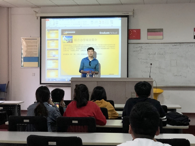 第二个环节,刘教授针对成人导航 与美国威斯康星大学密尔沃基分校研究生双学位联合培养项目,从报名要求、申请流程、课程及费用、职业规划等方面进行了详细介绍,鼓励同学们积极参与该项目,抓住机会,开拓视野,提升自我。